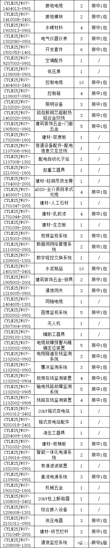 2025年原集体企业、子公司及战新产业第二次物资公开招标框架采购