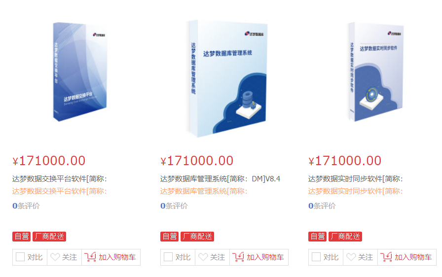 达梦数据库收费标准价格范围在十七万左右,参考价格来源于京东,如下图: