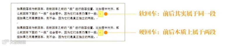 而两个软回车之间的文字不能称为一个段落, 只是换行显示而已,可以称为逻辑段落。