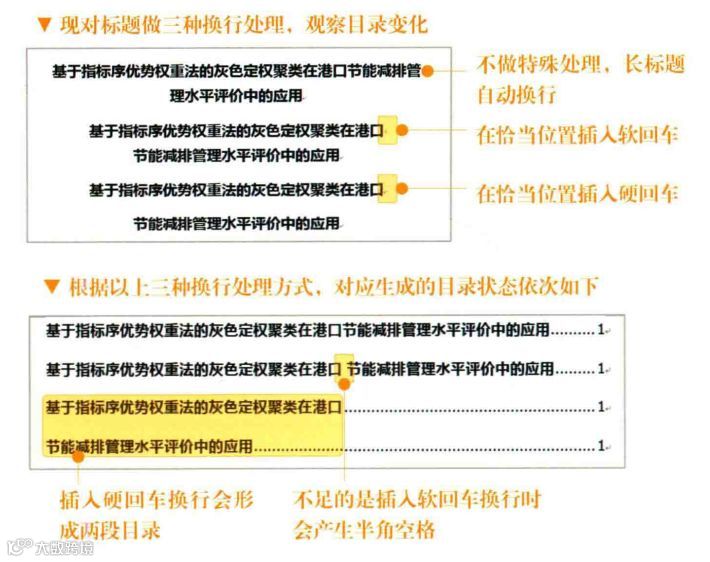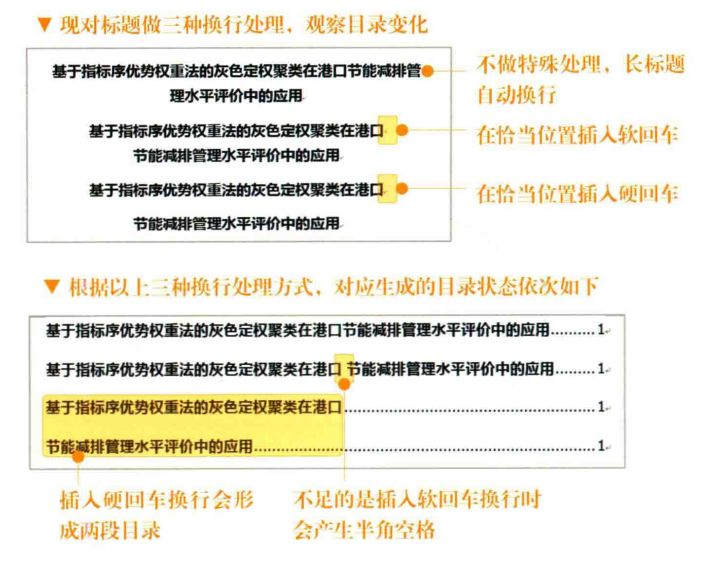 充分利用软回车这一特点,也会带来好处:出于美观和语义的考虑,长标题需要途中折行的时候,可以手动加入软回车,从而避免目录中出现两个标题。