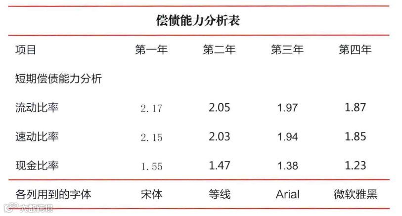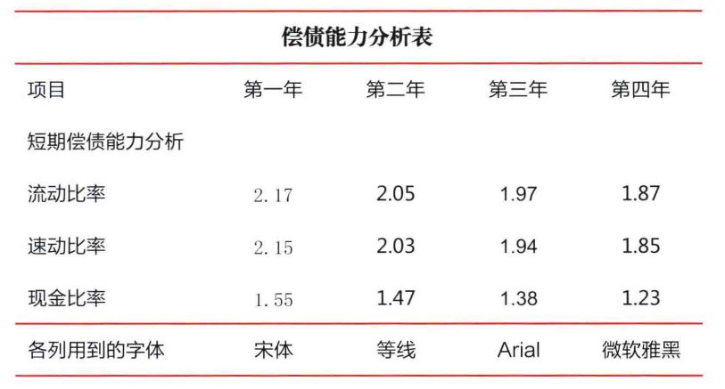 Office数据分析PPT的正文、表格或图表中会大量用到数字,这些数字的特点是字号偏小,假如要清晰阅读的话,推荐优先使用英文Arial字体。