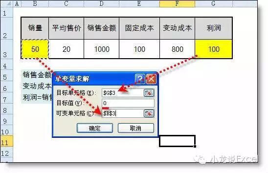 可变单元格:$B$3。为最终需要计算出结果的单元格,本例是需要预测销量。