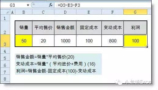 点击确定后,预测结果已出来,当B3销量为25时,G3单元格利润为0(保本)