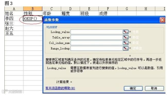 第四个参数为指定在查找时是要求精确匹配还是大致匹配,如果填入“0”,则为精确匹配。这可含糊不得的,我们需要的是精确匹配,所以填入“0”(请注意:Excel帮助里说“为0时是大致匹配”,但很多人使用后都认为,微软在这里可能弄错了,为0时应为精确匹配),此时的情形如图4所示。