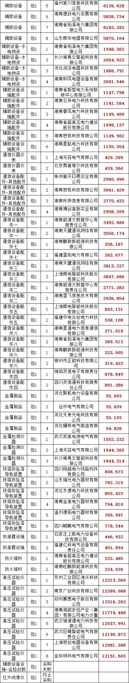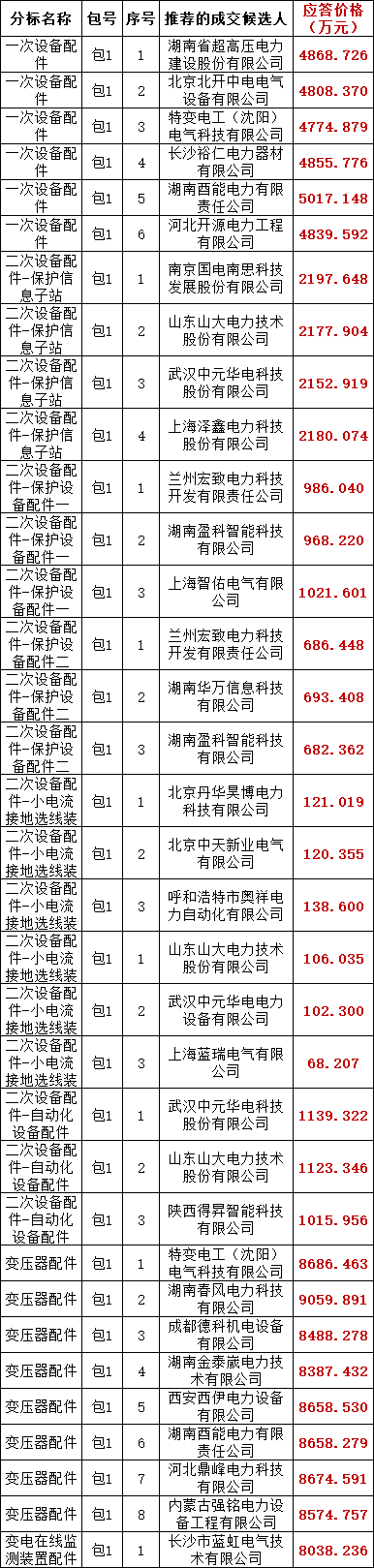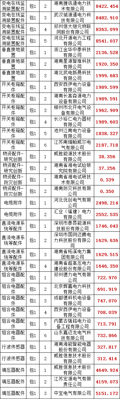 国网湖南省电力有限公司2025年第一次电网零星框架竞争性谈判采购项目项目评审工作已经结束,依据《中华人民共和国招标投标法实施条例》、《招标公告和公示信息发布管理办法》对成交候选人公示的规定,现将评审委员会推荐的成交候选人予以公示,公示期1日。成交人或者其他利害关系人若对评审结果有异议的,请在成交候选人公示期间以书面形式提出。