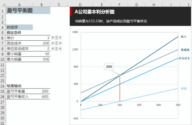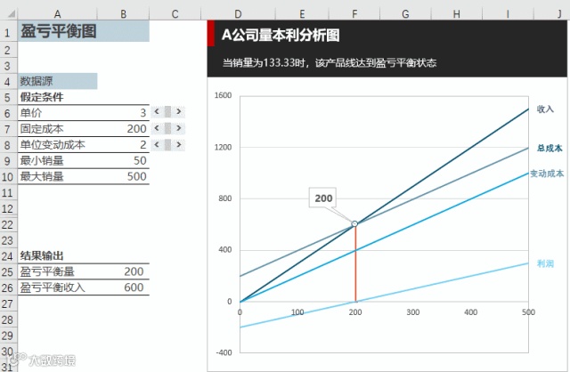比如这张量本利分析图表,贴合财务知识点和基础的excel技能就可以轻松做出来