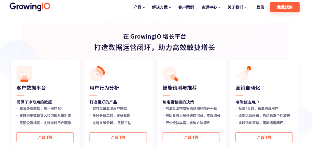GrowingIO是基于用户行为的新一代数据分析产品,提供数据采集和分析技术,实现精益化运营。