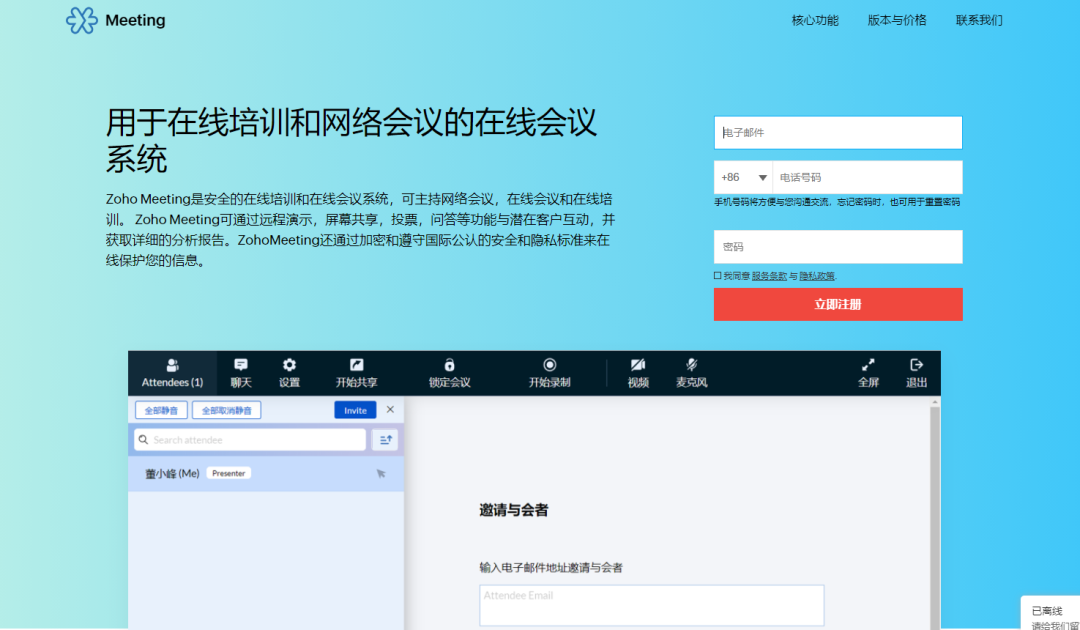 Zoho Meeting是安全的在线培训和在线会议系统,可主持网络会议,在线会议和在线培训。Zoho Meeting可通过远程演示,屏幕共享,投票,问答等功能与潜在客户互动,并获取详细的分析报告。ZohoMeeting还通过加密和遵守国际公认的安全和隐私标准来在线保护您的信息。