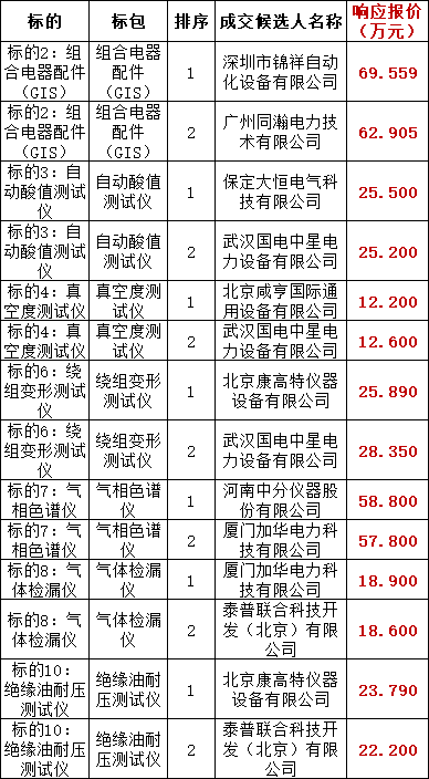 深圳供电局有限公司2025年主网一次设备、主网一次材料、配网设备(220kVSF6气体电力变压器、气体发生器等18个标的)第二批次物资专项公开询比采购(招标项目编号:CG0900062002114885),经采购工作组评审,现将成交候选人公示如下: