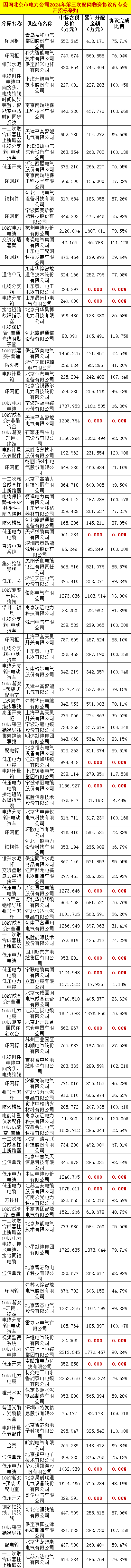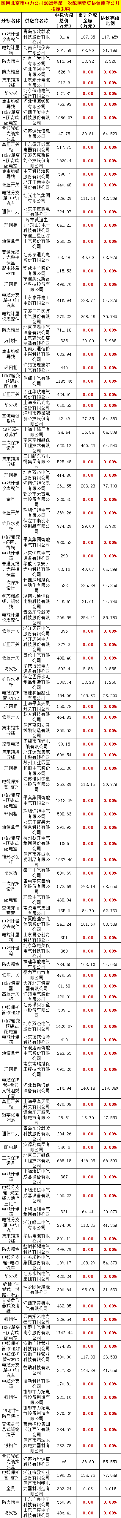 本期小编统计:国网北京2025年8月份协议库存执行情况公示表;
