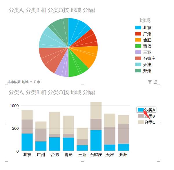 默认配色就很不错,而且演示的时候点击时会直接按你点击的类型帮你显示对应的数据(例如上面的堆积柱状图)