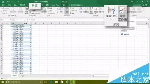 2、确保活动单元格处于数据表内,然后依次点击“数据”选项卡——“预测”组——“预测工作表”按钮。