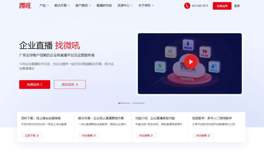 微吼创立于2010年,是企业级互动视频云平台,一站式互动视频解决方案服务商。微吼致力于以大数据+AI为依托,通过视频互动技术,为客户提供数字学习技术和数字营销云解决方案,为企业增长赋能,助力企业实现数字化转型和数字中台战略。