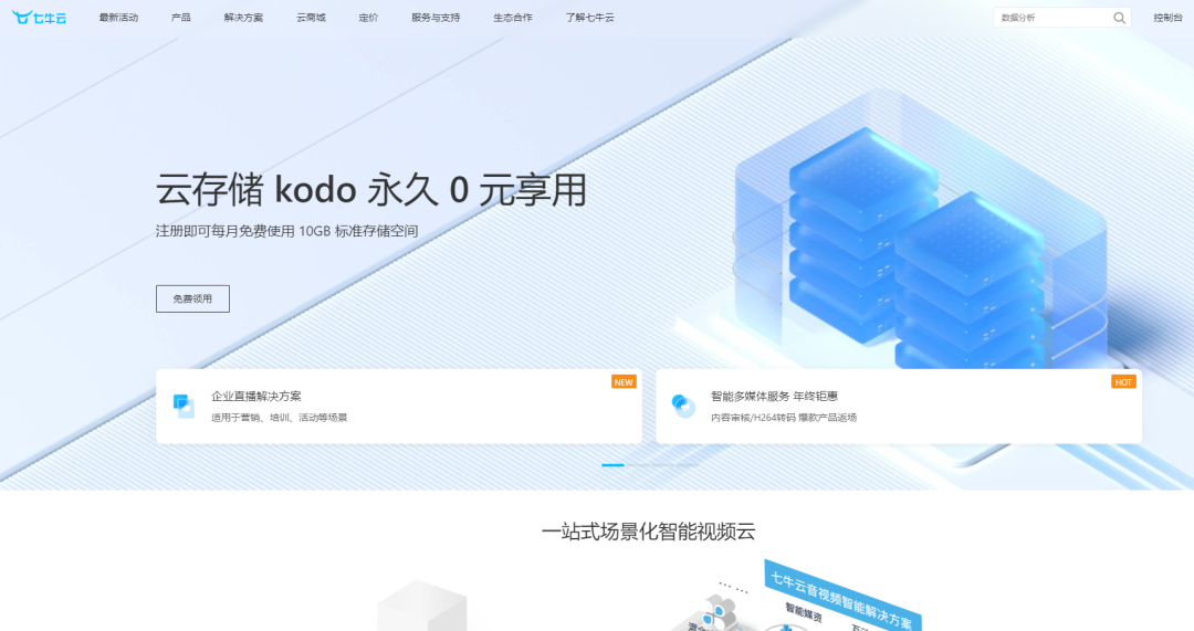 七牛云成立以来围绕数字化浪潮下的在线音视频需求,基于强大的云边一体化能力和低代码能力,深耕视频点播、互动直播、实时音视频、摄像头上云等领域,提供面向场景的音视频服务,赋能产业数字化转型。