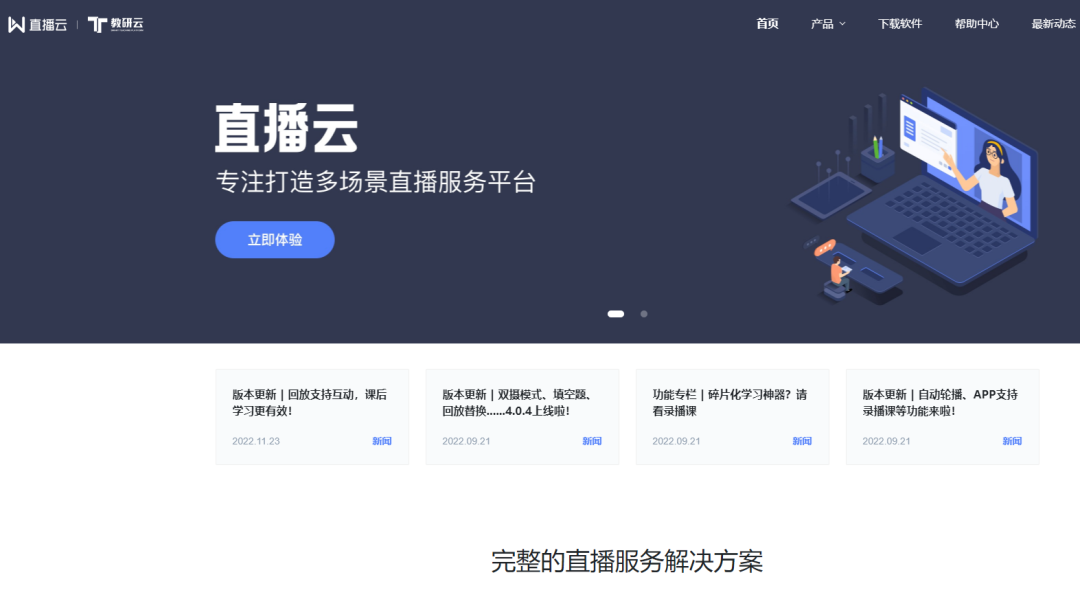 直播云是专注于在线学习交流的直播服务平台,助力企业、机构快速开展线上直播课业务。适用于大班直播课、小班互动直播课、一对一直播课、微信直播、在线答疑等培训场景,帮助机构快速实现业务线下线上融合。