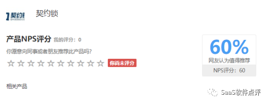 截至2022年3月「契约锁」在SaaS点评NPS评分为60分,综合热度为41,有60%的SaaS点评网友认为其值得推荐。