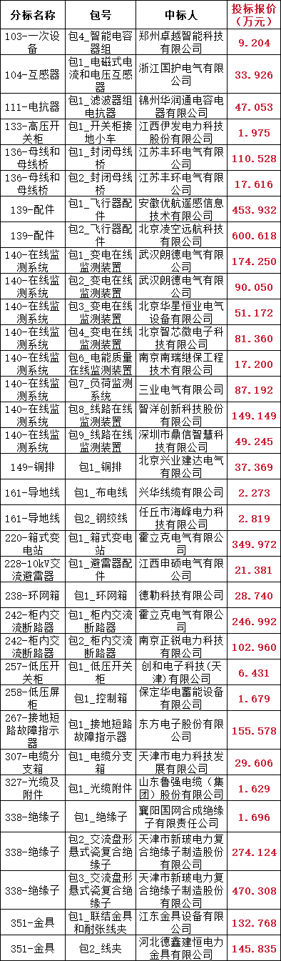 国网天津市电力公司2025年第四次物资招标采购的中标候选人公示活动已经结束。现将中标人名单公告如下: