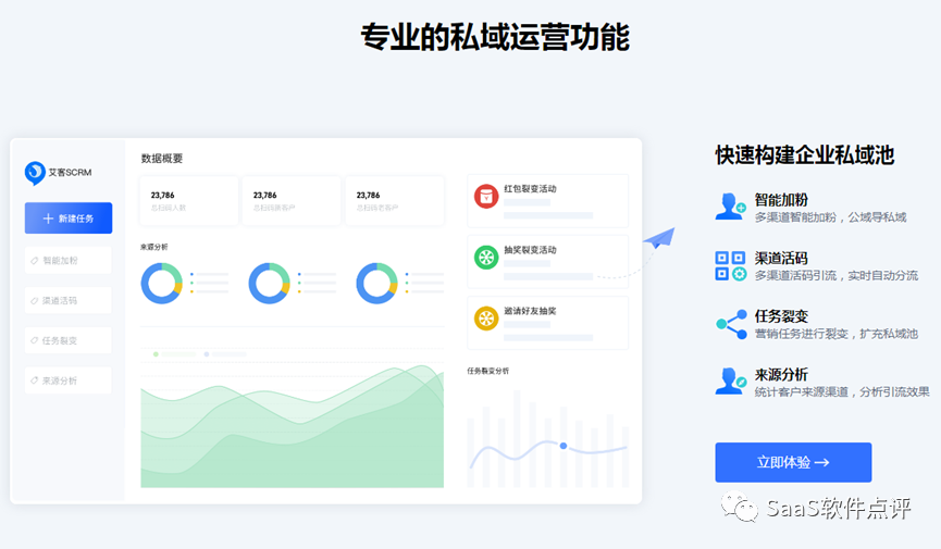 艾客提供私域流量的管理服务,解决运营的难题,为企业提供个性化的服务等,都是艾客SCRM的功能。此外艾客SCRM还开发了更多高级功能,为企业微信营销,私域流量运营管理提供:裂变加粉,聊天存档,渠道活码,会话存档,私有化部署,移动办公等服务,无需下载在线营销就能使用,很方便。