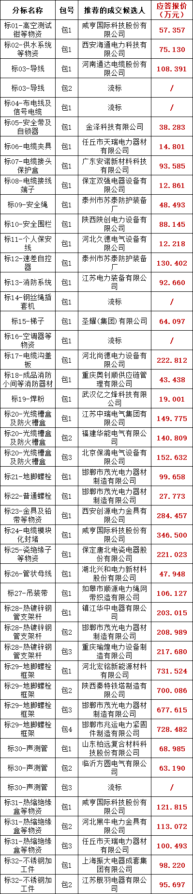 国网陕西省电力有限公司2025 年新增第一次子公司及省管产业单位物资框架竞争性谈判项目评审工作已经结束,现将评审委员会推荐的成交候选人予以公示,公示期3日。应答人或者其他利害关系人若对评审结果有异议的,请在成交候选人公示期间以书面形式(传真)提出。