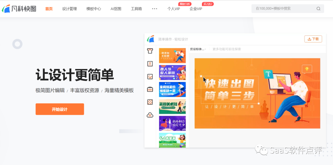 凡科快图是线上广告设计工具,拥有大量模板素材图片,数十款原版字体样式免费商用。