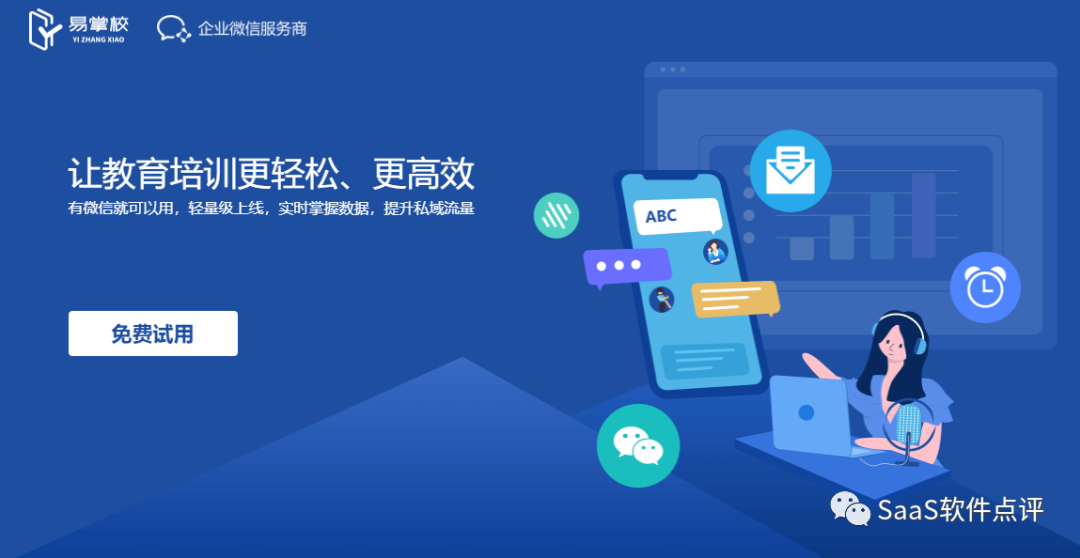 易掌校平台以企业微信+微信小程序形式,为教育培训结构提供多校区管理的一体化解决方案,主要功能包括:招生拓客、品牌机构、校区管理、学员管理、经营分析等等。