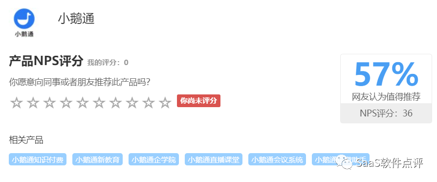 截止2021年12月「小鹅通」在SaaS点评NPS评分为36分,综合热度为1189。
