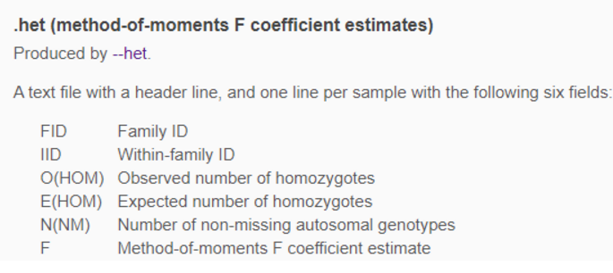 自然群体,做GWAS分析,可以对杂合度进行质控,认为群体的杂合度应该是合理区间,可以用三倍标准差的形式进行离群样本的质控,比如计算的F值,通过上面提供的函数,剔除样本。