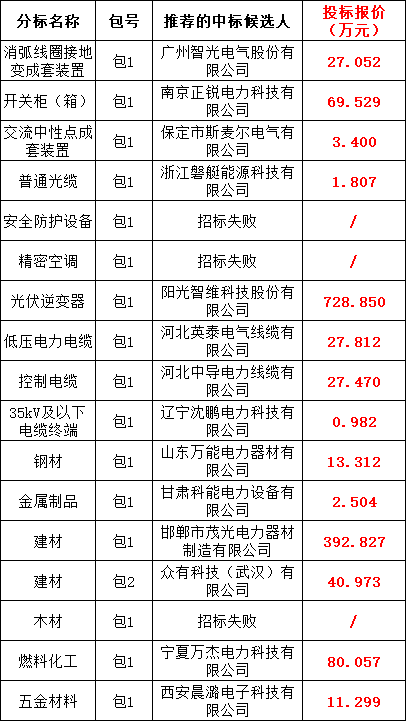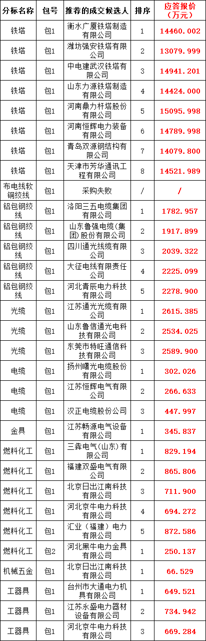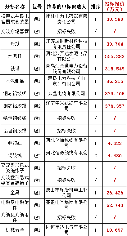 国网冀北电力有限公司2025年子公司丶战新产业丶原集体企业第二次物资(专项)框架协议竞争性谈判采购(采购编号:JBCY25-HW-KJJT-02-ZX)评审工作已经结束。现将评审委员会推荐的成交候选人公示如下: