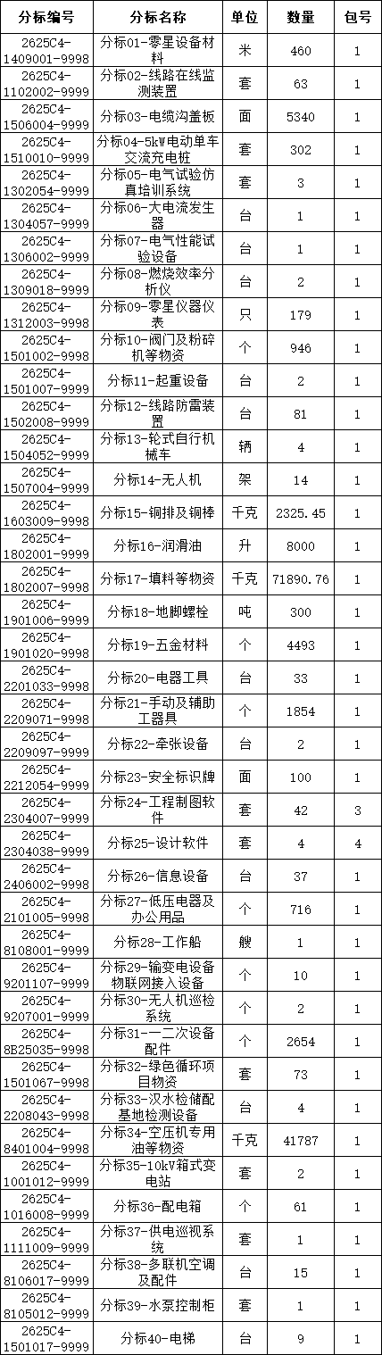 2025年第四次子公司(含原集体企业)物资集中招标采购项目