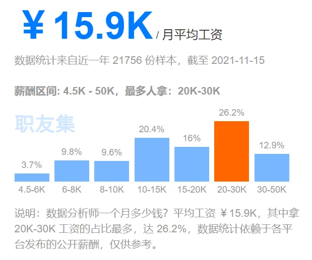 其次,从历年以来的招聘数据发现,数据分析人才岗位薪资平均高达15900元。