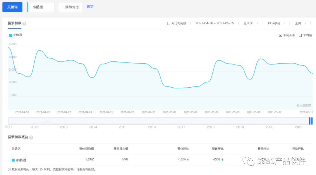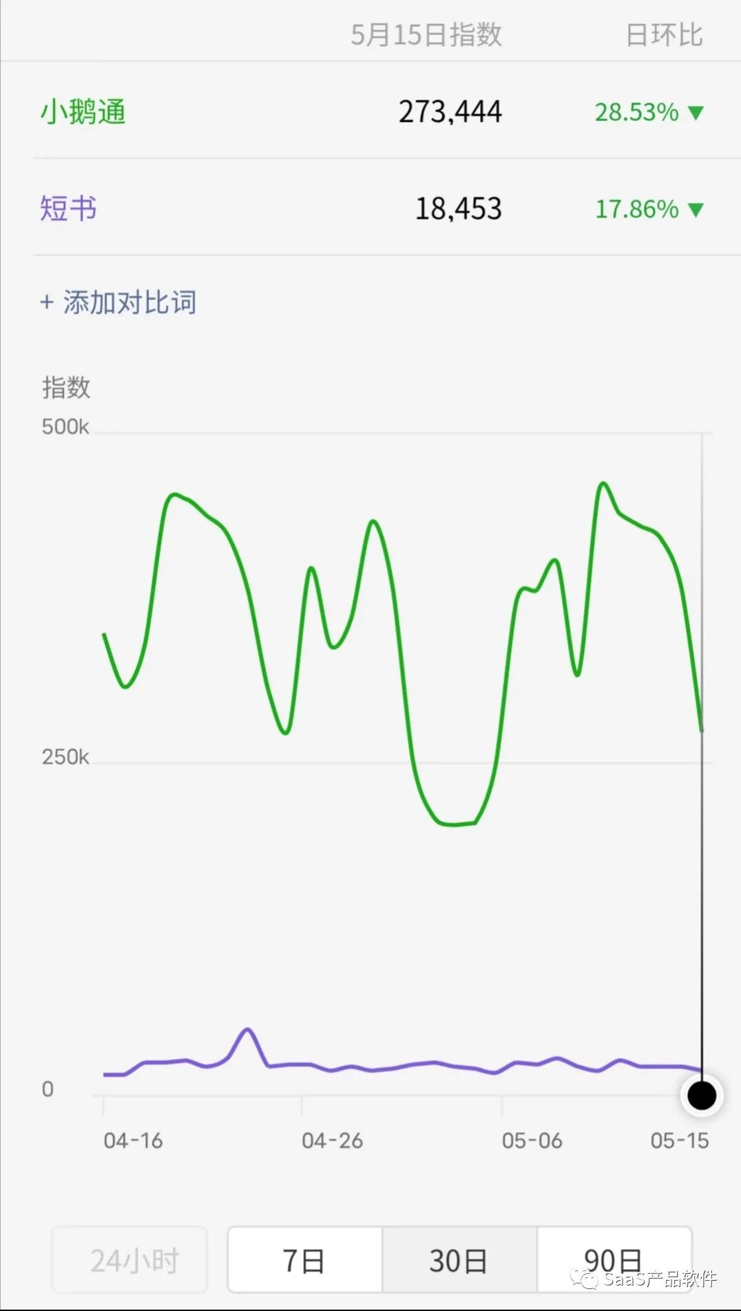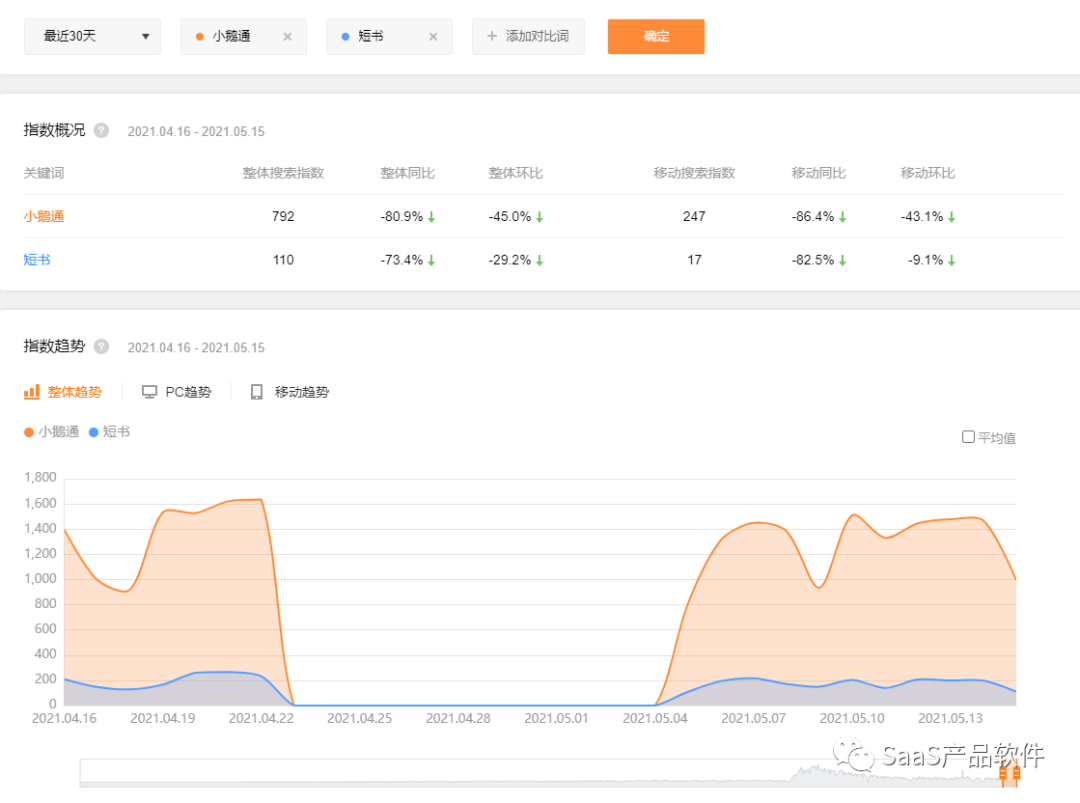 以上为搜狗指数,小鹅通比短书的搜索指数高将近七百。