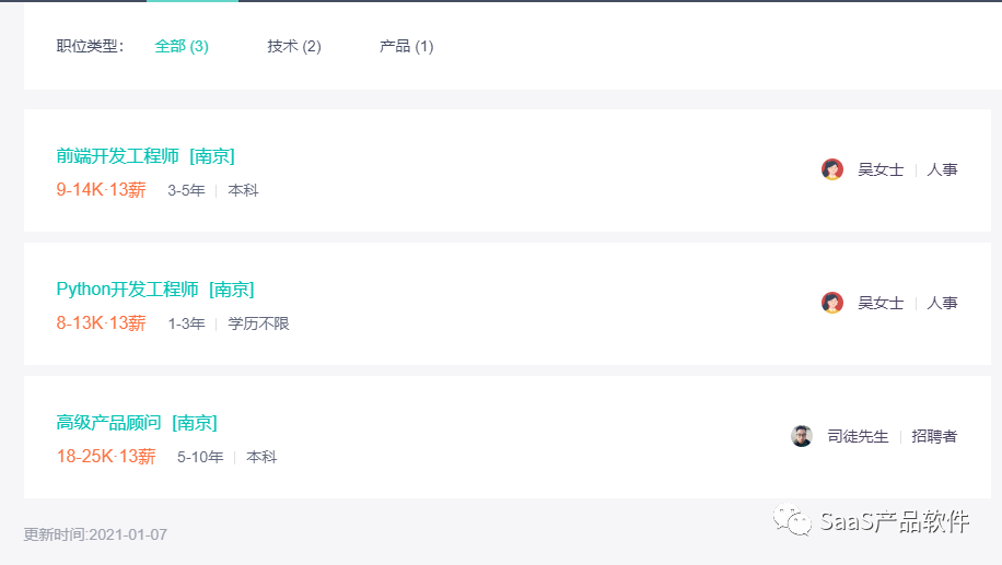 明显看出小鹅通招聘岗位类型和人数都比较多,说明公司还在高速发展中。而短书近期只发布了三个职位,团队规模相对较小。