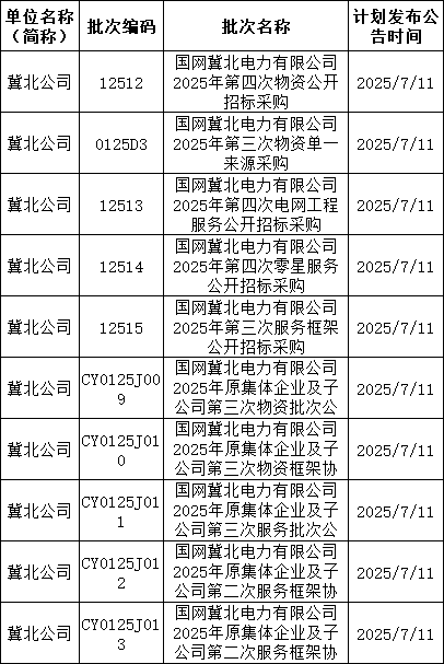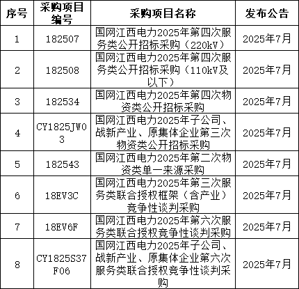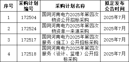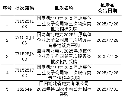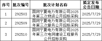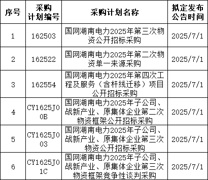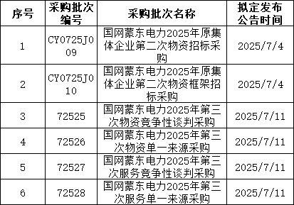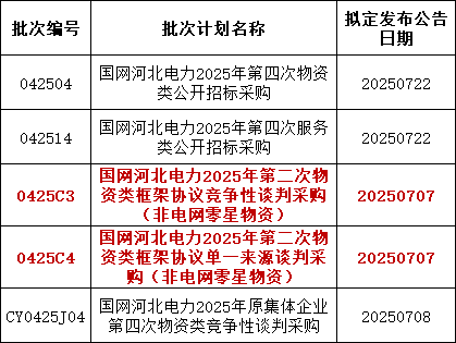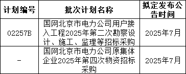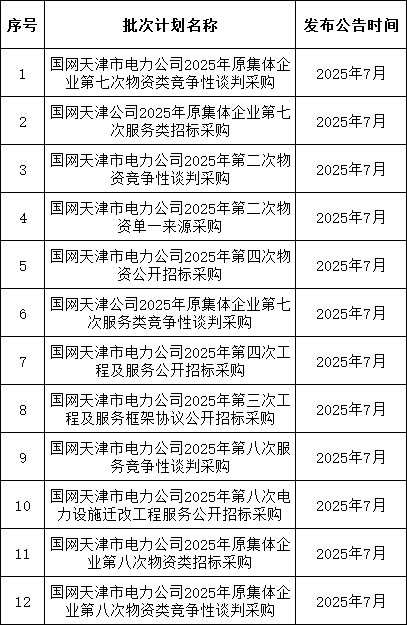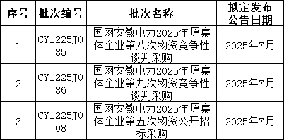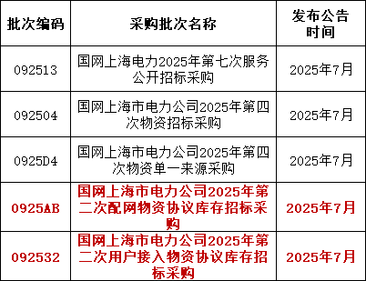 3、国网上海7月预计发布两批协议库存:国网上海市电力公司2025年第二次配网物资协议库存招标采购;国网上海市电力公司2025年第二次用户接入物资协议库存招标采购