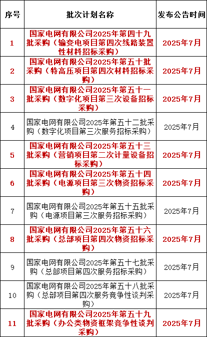 3、国家电网有限公司2025年第五十批采购(特高压项目第四次材料招标采购)