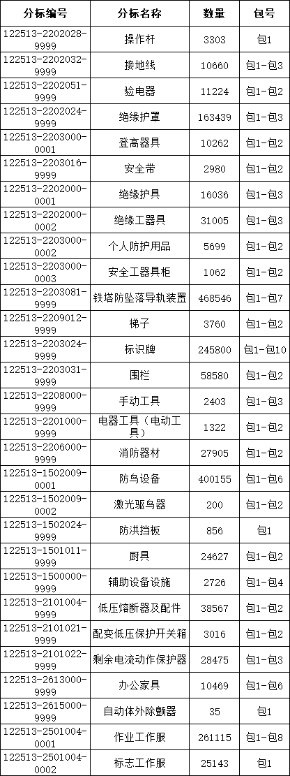 3、零星物资:工器具、标识牌、五金等