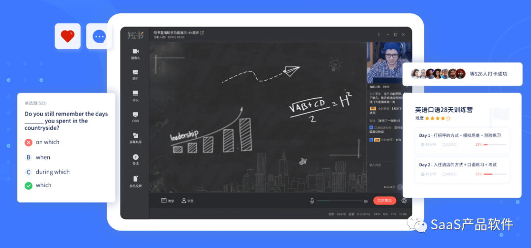 提供全方位的在线教育解决方案,帮助培训机构实现了在线教学、管理、营销、安全等问题。