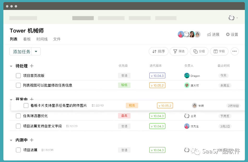 团队协作工具 Tower 最近上线新功能,把项目分成了普通项目和高级项目,高级项目可以自定义任务字段,任务清单 excel 化,比之前的普通项目好用很多。