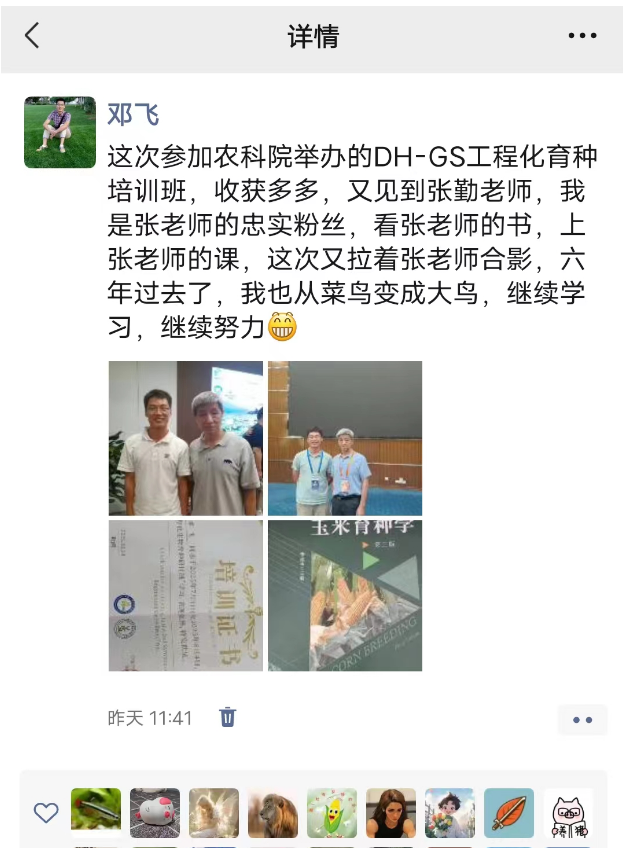 会议上遇到了我最敬佩的张勤老师,张勤老师是数量遗传学的专家,写了很多书,也教过很多课,跟着张老师我学到了很多东西。上一次拉着张老师合照是2019年,转眼六年过去了,我也从刚开始的“入门”到现在“出家”,这次又拉着张老师合照一张,没想到张老师知道我,说我的博客写的很好,听到这句话,我直接飞起来了,因为刚开始学这一块时,网上没有资料,书籍的信息又很难懂,所以我学会了一点,就写一篇博客,没想到间接的帮助了很多人,很是自豪,又有些惭愧,因为这两年都是炒剩饭没有新东西,颇有些“江郎才尽”的感觉,张老师的鼓励,还有参会其它老师的鼓励,让我信心满满,这博客还是要继续写下去的。