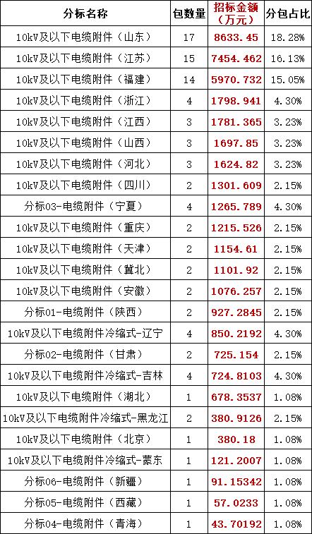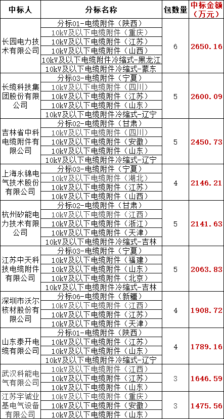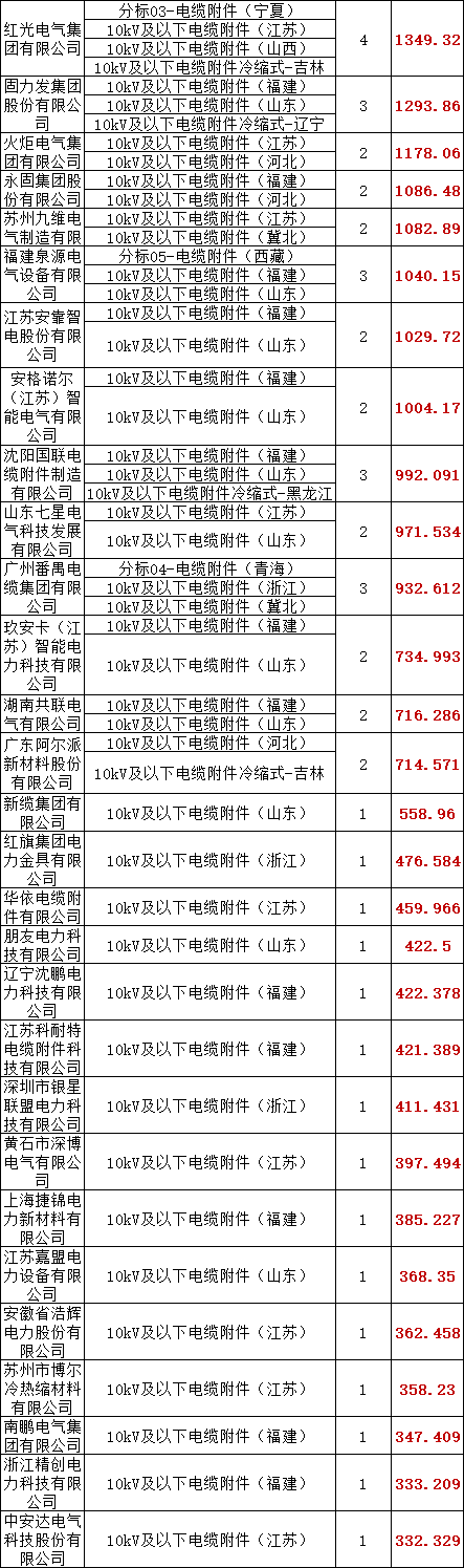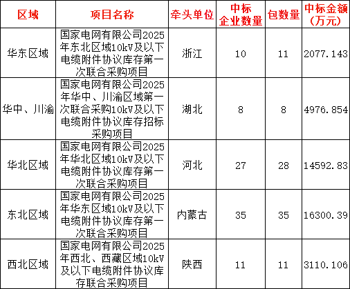国家电网2025年5大区域的10KV及以下电缆附件第一次联合采购中标信息已公示;小编分析汇总详情如下: