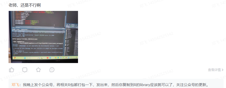 这日子没法过了,然后我就说:我晚上发个公众号,将相关R包都打包一下,发出来,然后你复制到R的library应该就可以了。