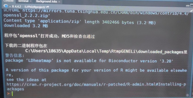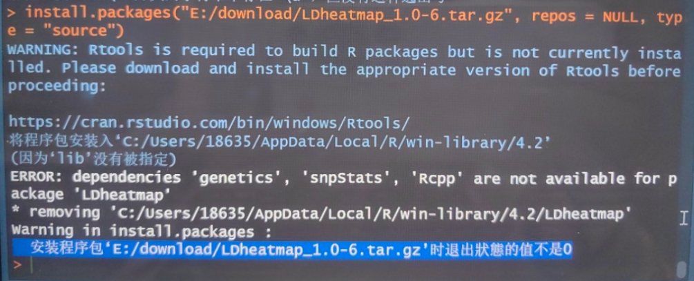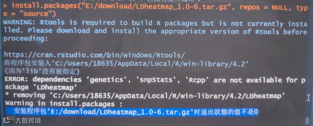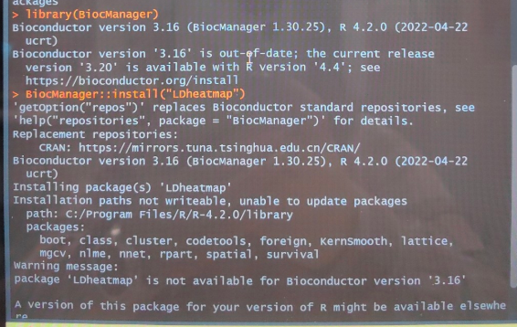 报错显示LDheatmap不在Bioconductor3.2版本中,然后报错显示: