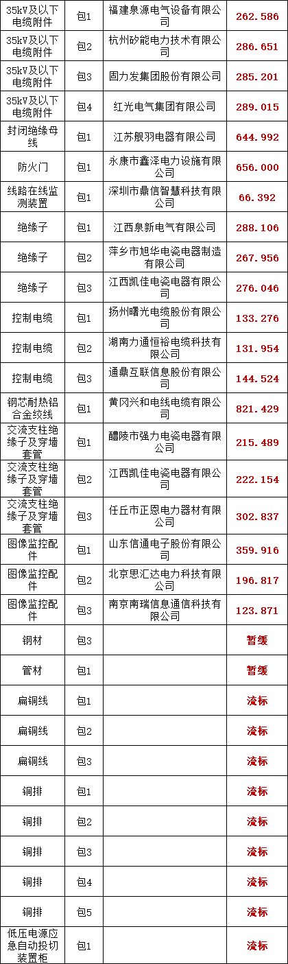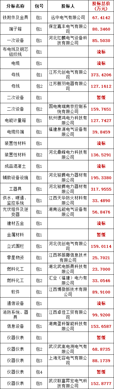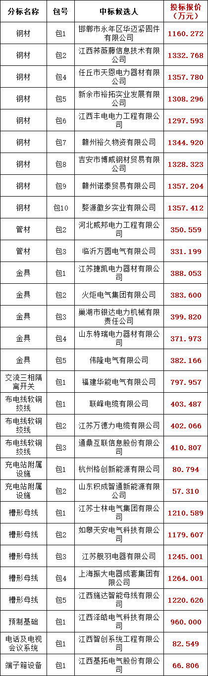 国网江西电力2025年子公司、战新产业、原集体企业第一次物资类框架协议公开招标采购项目评标工作已经结束,依据《中华人民共和国招标投标法实施条例》、《招标公告和公示信息发布管理办法》对中标候选人公示的规定,现将评标委员会推荐的中标候选人予以公示,公示期3日。投标人或者其他利害关系人若对评标结果有异议的,请在中标候选人公示期间以书面形式(传真或电子邮件)提出。