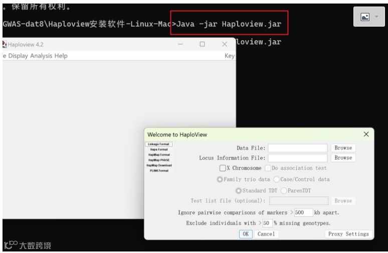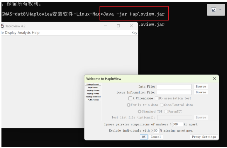 想到一个方法,既然Linux和Mac可以运行Haploview.jar文件,那么windows系统也可以,测试一下:
