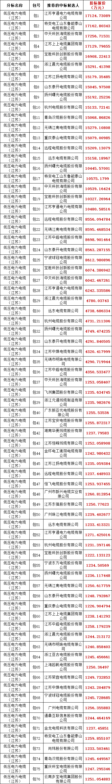 国家电网有限公司2025年华东区域第一次联合采购低压电力电缆协议库招标采购的中标候选人公示活动已经结束。现将中标人名单公告如下: