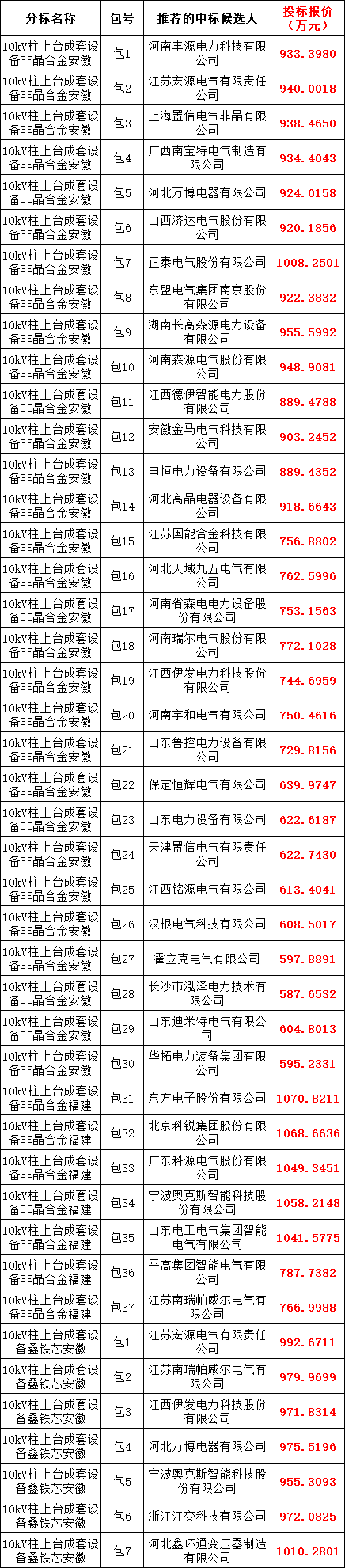 国家电网有限公司2025年华东区域第一次联合采购10kV柱上变压器台成套设备协议库存招标采购评标工作已经结束,经评标委员会评审及公司招投标领导小组审定,现将评标委员会推荐的成交候选人予以公示,公示期截止至2025年6月23日。投标人或者其他利害关系人若对评标结果有异议的,请在中标候选人公示期间以书面形式(传真)提出。