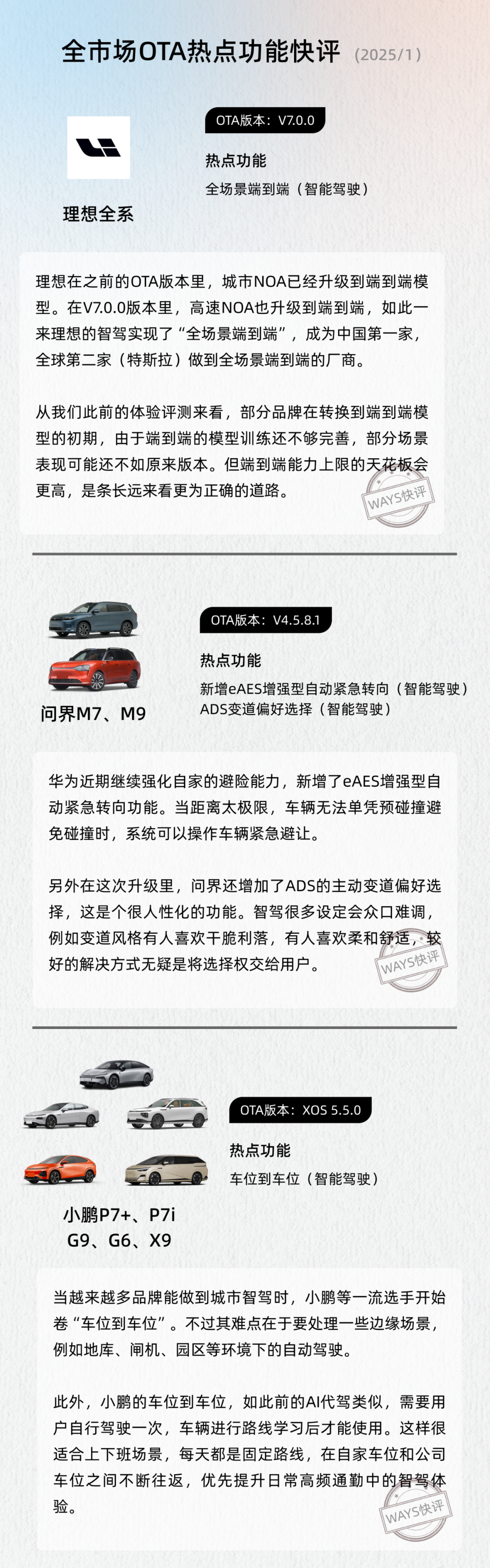 1月OTA总览 | 继续卷智驾,理想全场景端到端,小鹏实现车位到车位