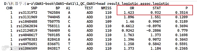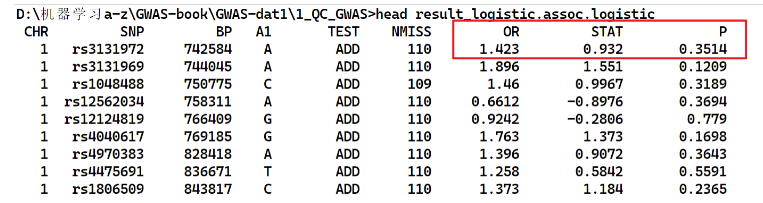 plink的Logisitic模型的GWAS分析计算结果如下: