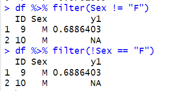 > df2 %>% filter(Sex != "F")