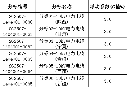 国家电网有限公司2025年西北、西藏区域10kV及以下电缆附件协议库存联合采购项目于2025年6月3日开标,本次开标采用网络直播方式进行,由监督人员现场抽取浮动系数(C值)。浮动系数抽取情况如下: