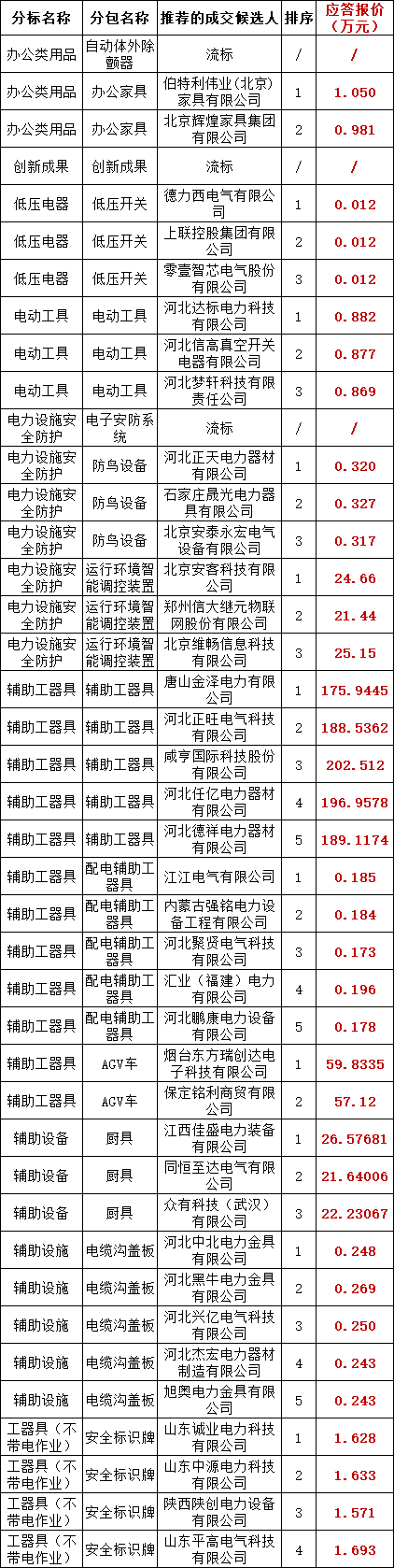 国网冀北电力有限公司2024年电网零星物资(新增)框架公开竞争性谈判采购评审工作已结束,现将评审委员会推荐的成交候选人予以公示,公示期3日,应答人或者其他利害关系人若对评审结果有异议的,请在成交候选人公示期间以书面形式提出。成交候选人公示如下: